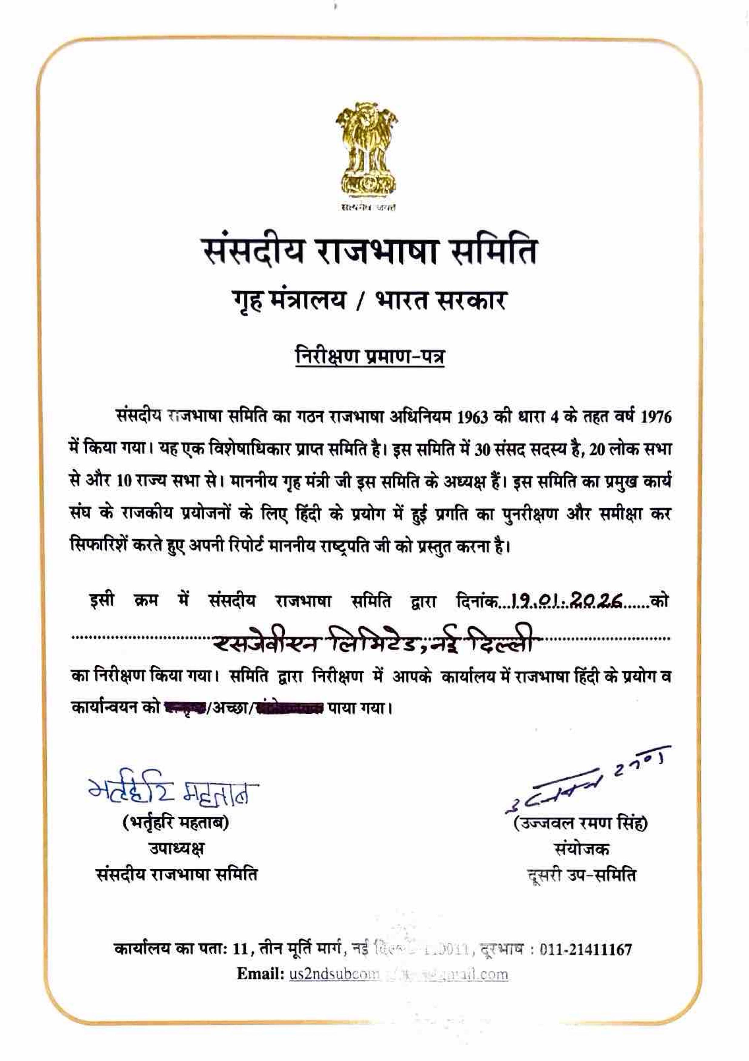 Second Sub-Committee of Parliamentary Committee on Official Language inspected SJVN LO in New Delhi